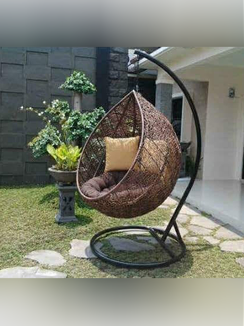 Handmade, Hammock chair, rattan sintetis and iron material, brown and black color, powder coating.