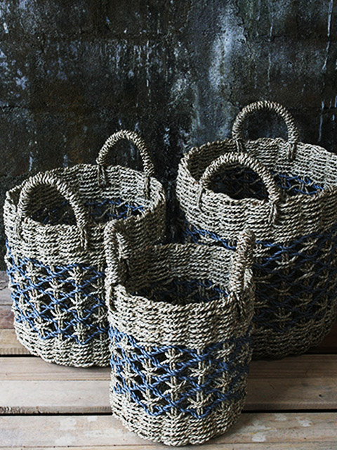 Handmade apikri Basket, Sea grass material, cylinder shape, natural and black color, without coating, available set-3 and set-4.