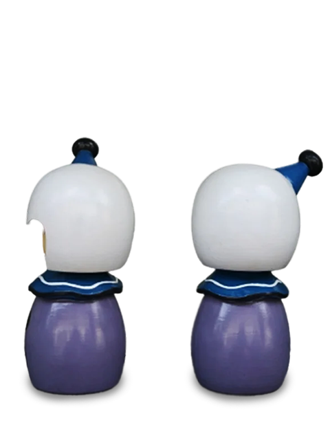 Apikri Hand made Japanese doll with school uniform, mahogany wood, white, cream, purple, blue, red and black color, waterbased coating.