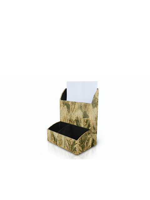 Stationary organizer, kancu leaf and cardboard materials, white and green color, aqua laquer coating.